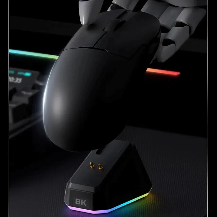 The AJAZZ AJ159 Pro supports seamless switching between Bluetooth, 2.4GHz wireless, and wired connections. Uniquely, it offers an 8000Hz polling rate in wireless mode and 1000Hz in wired mode, delivering an ultra-low response time of 0.125ms—eight times faster than standard gaming mice, ensuring instantaneous feedback and smoother cursor movement.